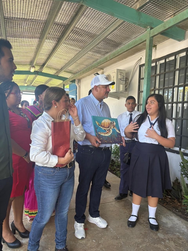 Durante el encuentro, los estudiantes Julissa Serrano y Keny Smith, presidenta de Promoción y de la Asociación Estudiantil, respectivamente, entregaron al diputado Herrera un ejemplar del Anuario de la Promoción 2025, y una pintura de una tortuga, símbolo representativo de la provincia de Bocas del Toro.