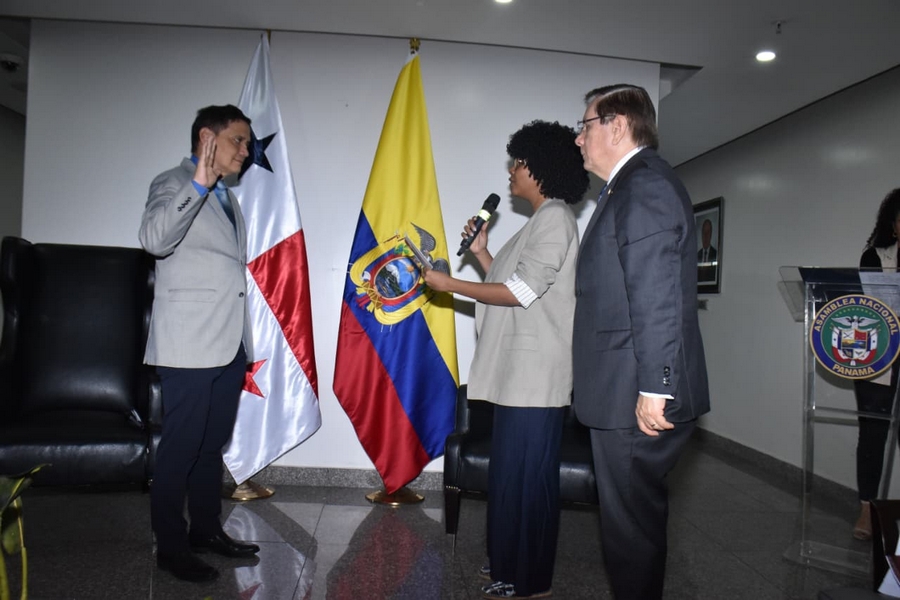 En el primer acto, la diputada Chandler D’Orcy juramentó al diputado Manuel Cheng, como presidente del Grupo de Amistad Panamá–Ecuador, quien juramentó al diputado Lenin Ulate.