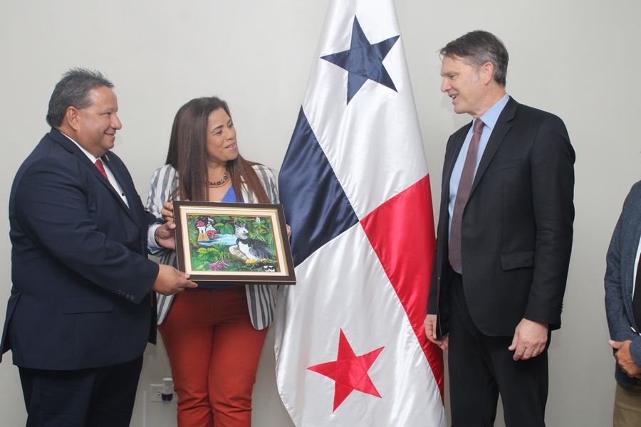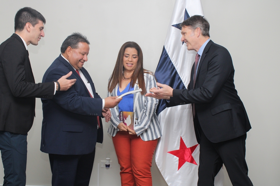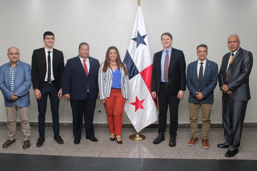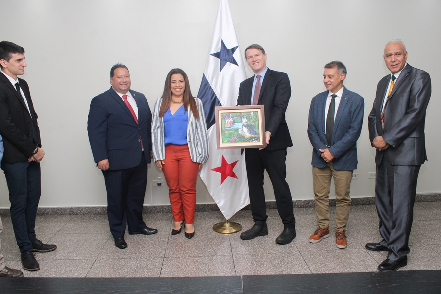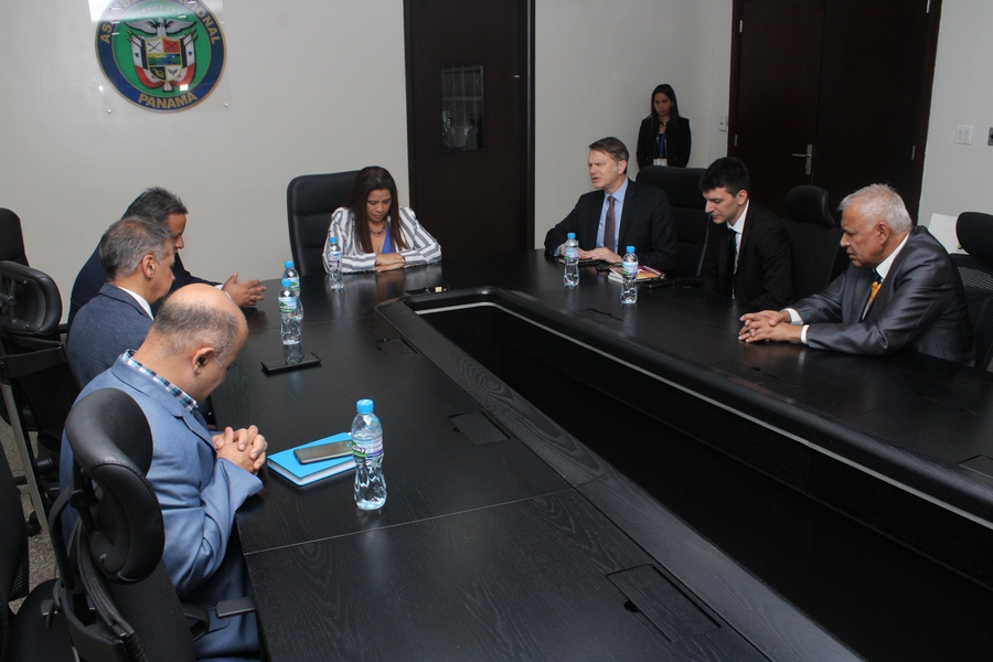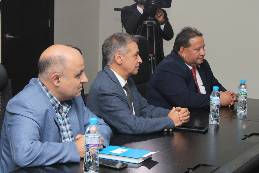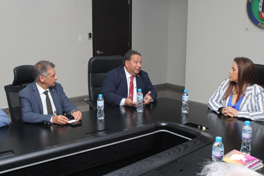 Presentes durante la visita de cortesía al primer órgano del Estado , acompañaron a Andrés Palau, Jonatan Proietti, traductor; Edmundo Gastaldi, director del equipo de Palau Latin Association; y John Levi Park, director global de la Asociación Palau.
